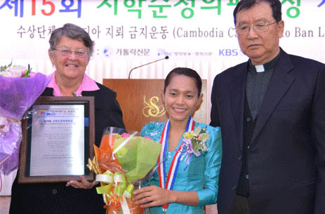 Sister Denise Coghlan, founder of the Cambodia Campaign to Ban Landmines (CCBL), and one of its activists, Song Kosal, were in Seoul yesterday to receive this year’s Tji Hak-soon Justice and Peace Award.